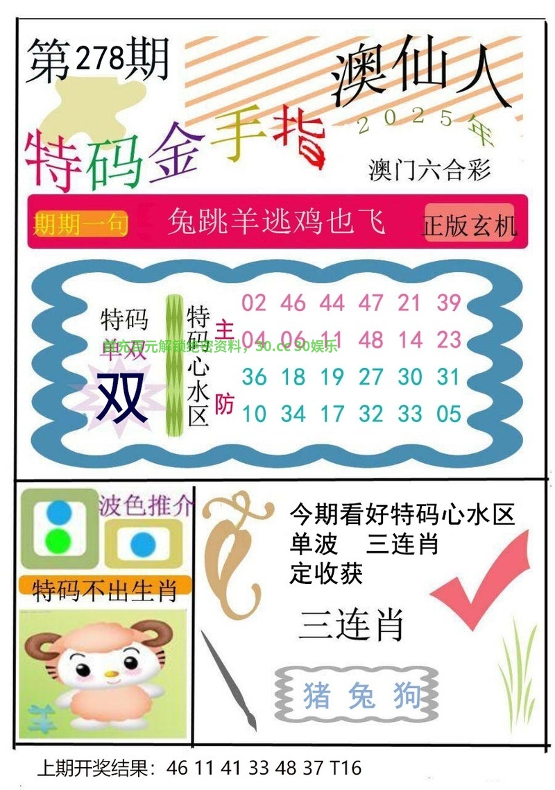 279期:【特码金手指解特】 今期生肖波色解红波特码蓝波特码单数特码三连肖解羊猪兔 ①必中九肖:羊猪兔狗马龙蛇猴鸡 ②必中五肖:羊猪兔狗马 ③必中三肖:羊猪兔 |